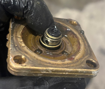 The following GC solenoid had been leaking for an extended period, causing tracking across the seat and the entire solenoid needed replacing.