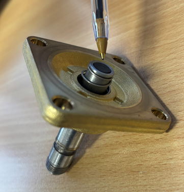 The plunger seal (below) was so swollen the solenoid failed to open. It should be flush with the end of the plunger (shown in image following showing a brand-new GC Solenoid). The GC Solenoid kit comes with a plunger seal, this should also be replaced when repairing the solenoid.